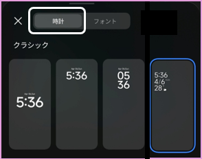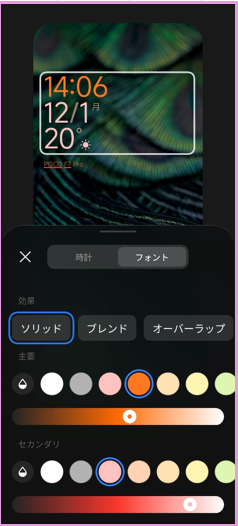 ②中段のカスタマイズ(時計部分のスタイル+フォント・カラー)