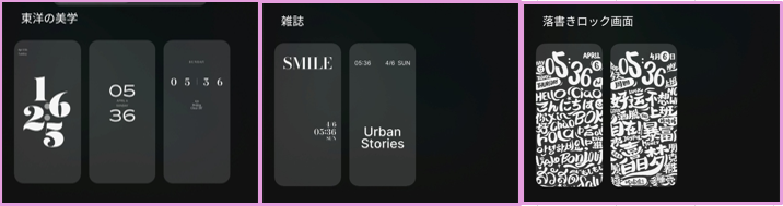 ※【設定】>【ロック画面】>【壁紙カルーセル】>「右にスワイプしてさらに表示」を有効にして、「表示」から「ストーリー」または「ツールボックス」を選択します。