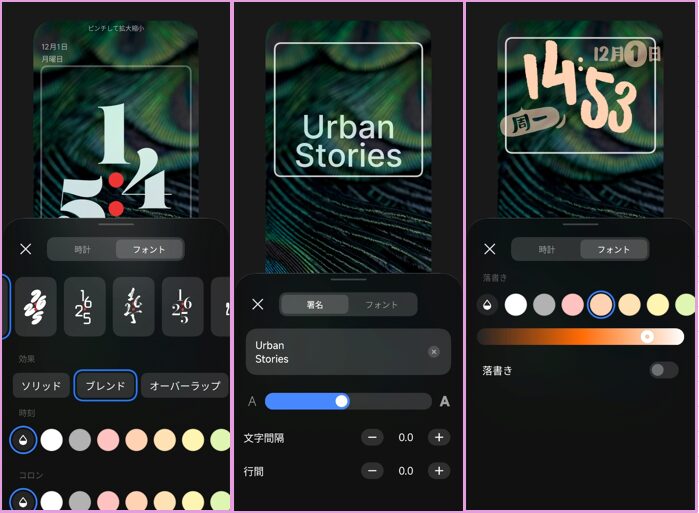 時計部分のスタイルとそれに合わせたフォント・カラーのカスタマイズができます。