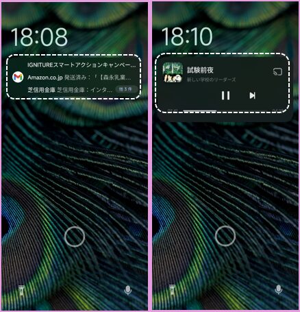 ロック画面を開いたときに、受信してまだ確認していない通知がパネルで表示されるので、ロック解除しなくても最近の通知を確認することができます。