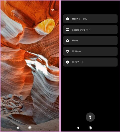 「ツールボックス」からは、「壁紙カルーセル」「Googleウォレット」「Home」「Mi Home」「Mi リモート」「懐中電灯」が動作します。