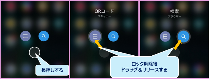 指紋認証して指で長押ししたままにすると、ロック解除後、ショートカットメニューが表示されるので、ショートカットアイコンまでそのままドラッグしてリリースするとそのショートカットを実行することができます。