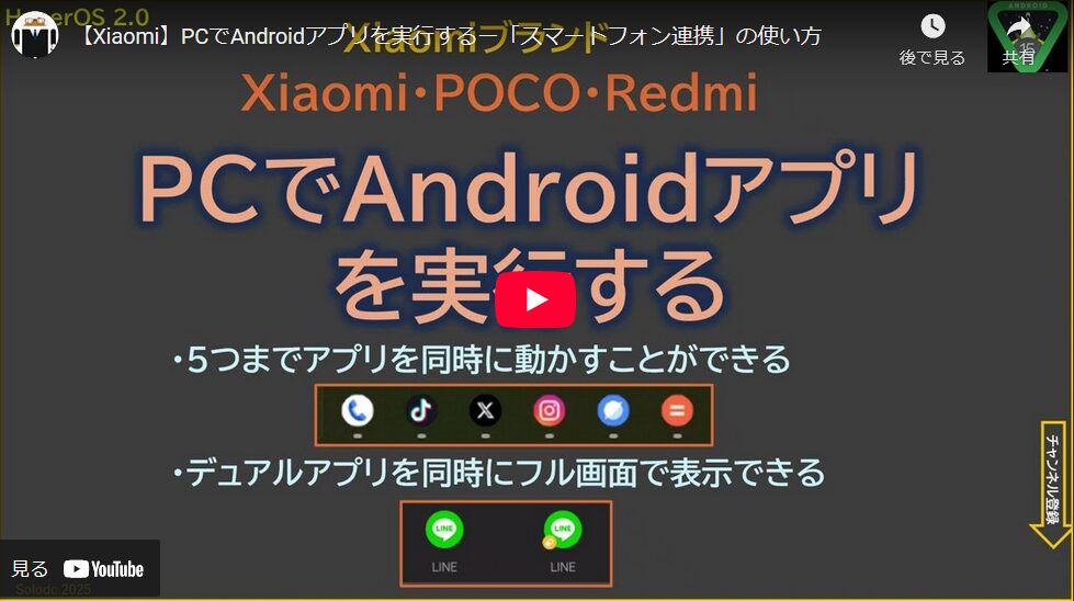 Xiaomi ブランドの「POCO」スマートフォンをWindowsPCと「Windowsにリンク」を利用して接続が完了したら、早速、PCの「スマートフォン連携」アプリを開いて、いろいろな機能を使ってみましょう。