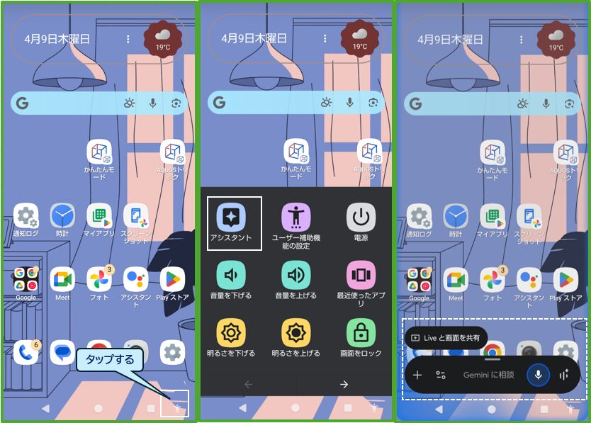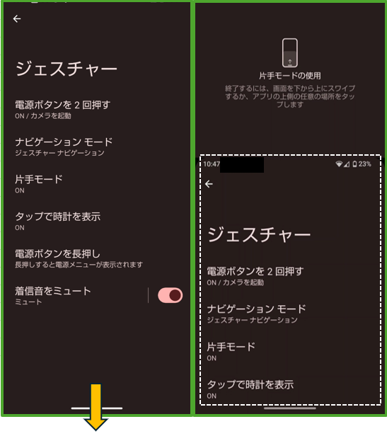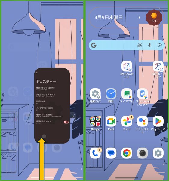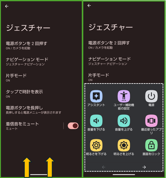 「片手モード」 と 「Gemini」起動