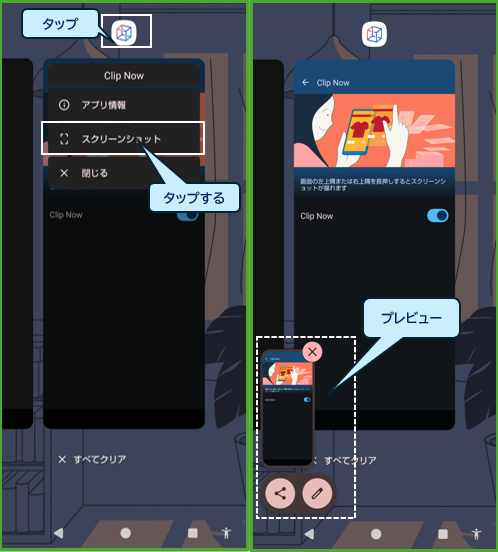 「Clip Now」(クリップナウ)は、シャープが提供する【AQUOS】独自のスクリーンショットを撮る機能です。