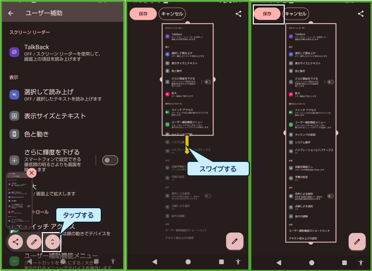 3.ユーザー補助機能メニューの「スクリーンショット」をタップする