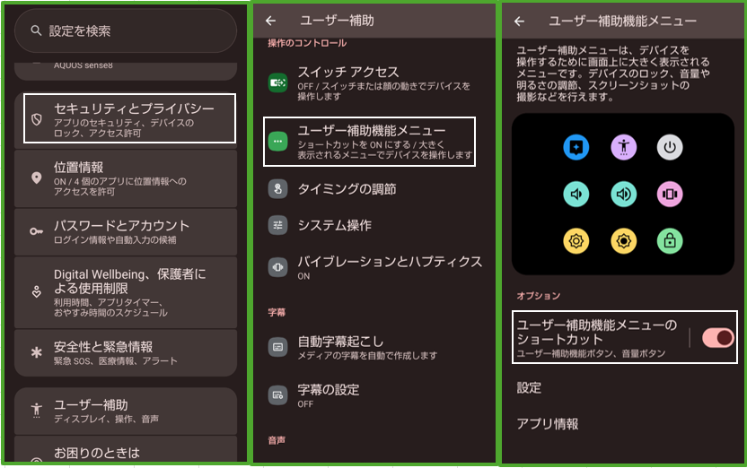 【AQUOS】【Android 16】ユーザー補助機能メニュー