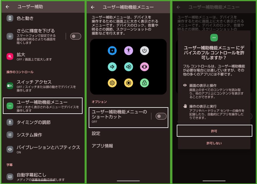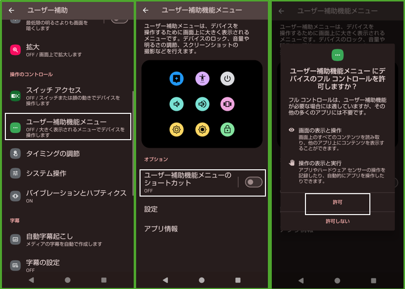 ユーザー補助機能ボタン ⇒ フローティングボタン ※共通