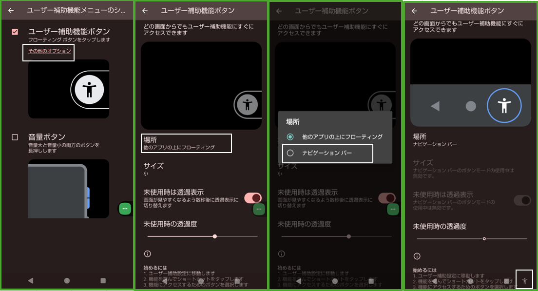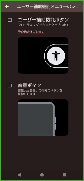 ユーザー補助機能ボタン ⇒ ナビゲーションバー ※3ボタン独自