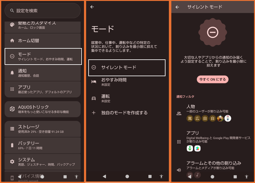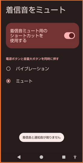 5)サイレントモードにする方法2 サイレントモードの設定画面から