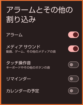 | カレンダーの予定 | 無効にすると、カレンダーからの予定通知が来ません。 |