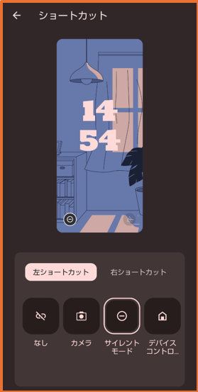 ロック画面の下部に追加できる「ショートカット」に「サイレントモード」を選択して、そのショートカットアイコンを長押しすると、サイレントモードになります。