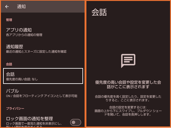 | 通知で画面をONにしない | 通知音は鳴りませんが、通知があったとき画面がオンになります。*1 | |