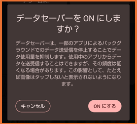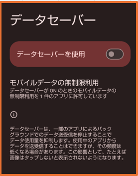 ・タップ:「データセーバーを使用」のON/OFFの切り替え