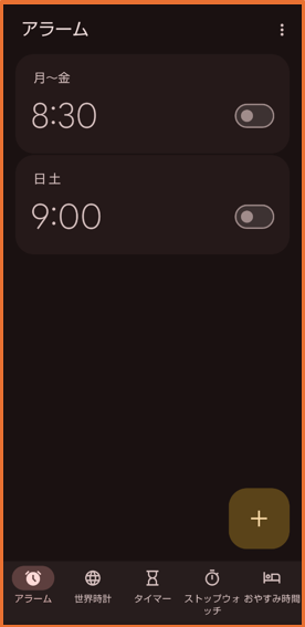 ・タップ:「時計」アプリの【アラーム】設定画面へ