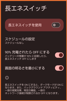 ・タップ:「長エネスイッチを使用」のON/OFFの切り替え