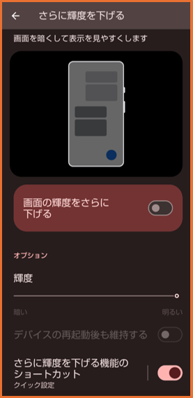 さらに輝度を下げる ■ ※クイック設定はショートカット