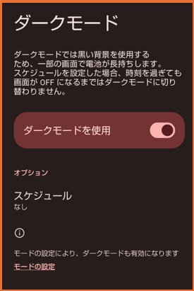 ・タップ:「ダークモードを使用」のON/OFFの切り替え