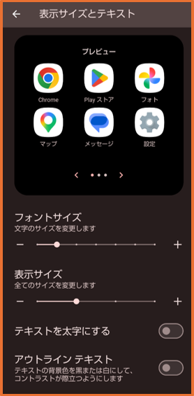 ・タップ:「画面の輝度をさらに下げる」のON/OFFの切り替え