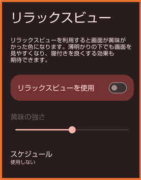 ・タップ:「リラックスビューを使用」のON/OFFの切り替え
