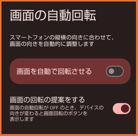 ・タップ:「画面を自動で回転させる」のON/OFFの切り替え