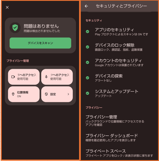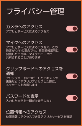 ・長押し:【セキュリティとプライバシー】設定画面へ