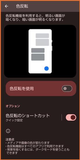 ・タップ:「色反転を使用」のON/OFFの切り替え