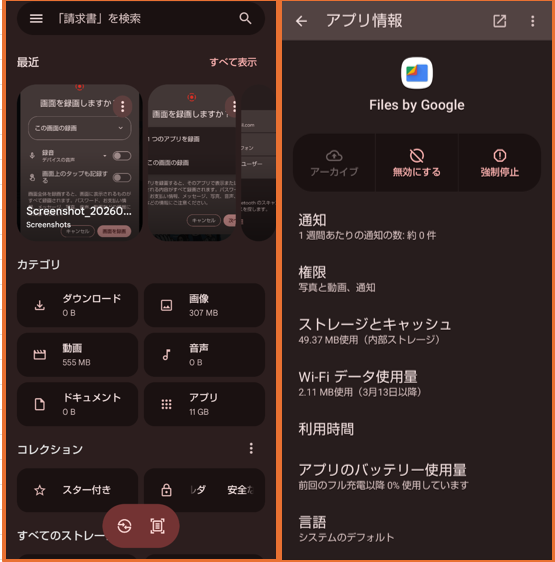 ⑤バックグラウンドで実行中のアプリの確認と停止