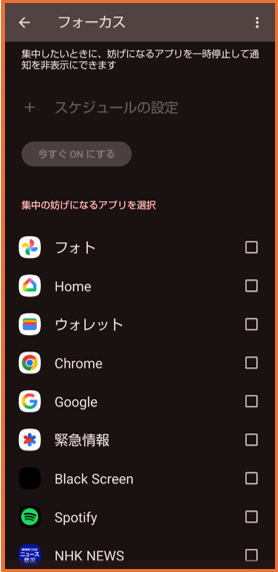 フォーカスモード(Focus Mode)は、Androidのデジタルウェルビーイング機能の一部で、ユーザーが集中力を維持するために、気が散るアプリや通知を一時的に制限するツールです。