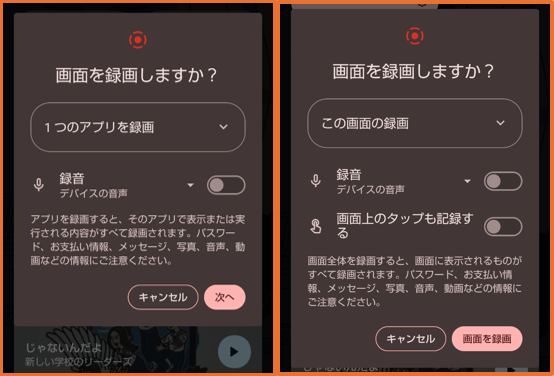 ・タップ:接続先の機器を指定して、画面のキャストができる