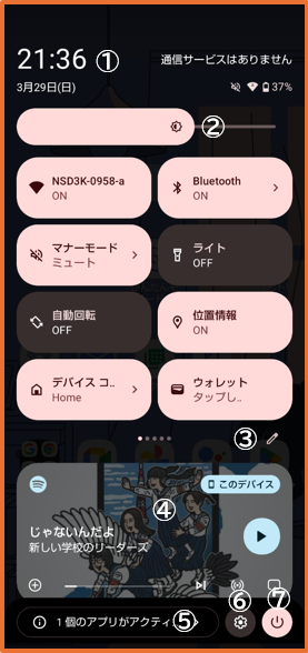 ③タップすると、クイック設定パネル内のタイルの追加/削除・並べ替えができる編集モードになります。(※4.参照)