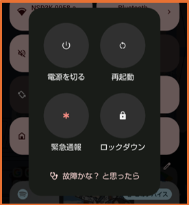 ⑦タップすると、【電源ボタンメニュー】が表示されます。