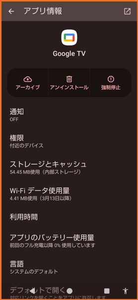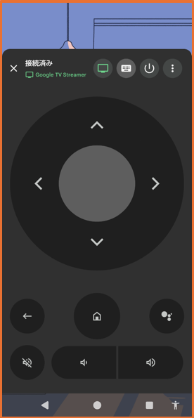 ・タップ:「Google TV」のリモコンになります。 ※ペアリングができない⇒【Google TV】アプリ情報画面で「ストレージ」と「キャッシュ」を消去して再起動。